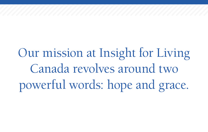 Our mission at Insight for Living Canada revolves around two powerful words: hope and grace. We earnestly desire to be a source of inspiration for you, to offer the spiritual sustenance you need to carry on. This isn’t just about you or me. This encouragement extends to everyone—perhaps a neighbour you’ve never met, or a family member who desperately needs a helping hand or another chance.