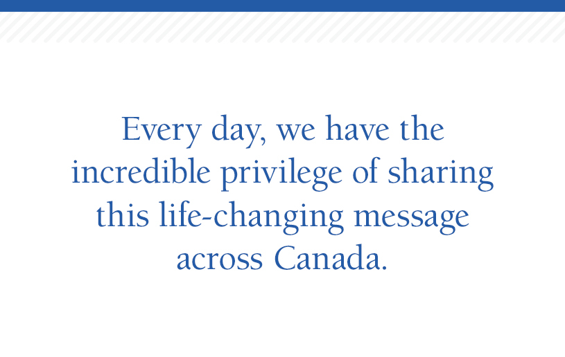 Every day, we have the incredible privilege of sharing this life-changing message across Canada. Your faithful gifts are the lifeblood of this mission, allowing us to share God’s grace with those who are desperate to hear it.