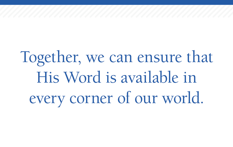 I want to extend a heartfelt invitation to you to partner with us in this season of gratitude. Your financial gift enables us to continue spreading the transformative message of the Gospel, empowering believers to deepen their understanding of God and their relationship with Him. Together, we can ensure that His Word is available in every corner of our world.