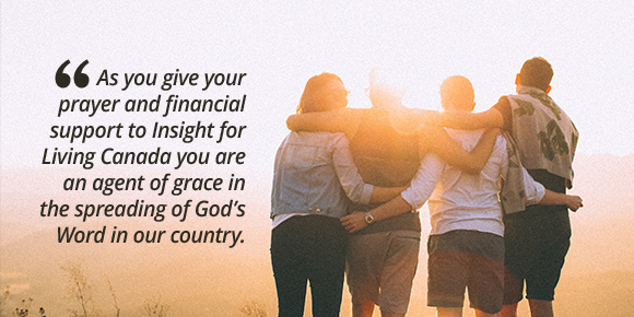 When you think about it, these two responses blend together in a beautiful way. As you give your prayer and financial support to Insight for Living Canada you are an agent of grace in the spreading of God’s Word in our country. Insight for Living Canada is your partner in fulfilling God’s mission.